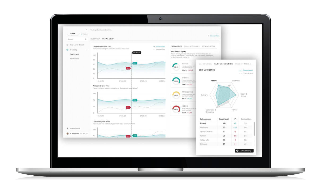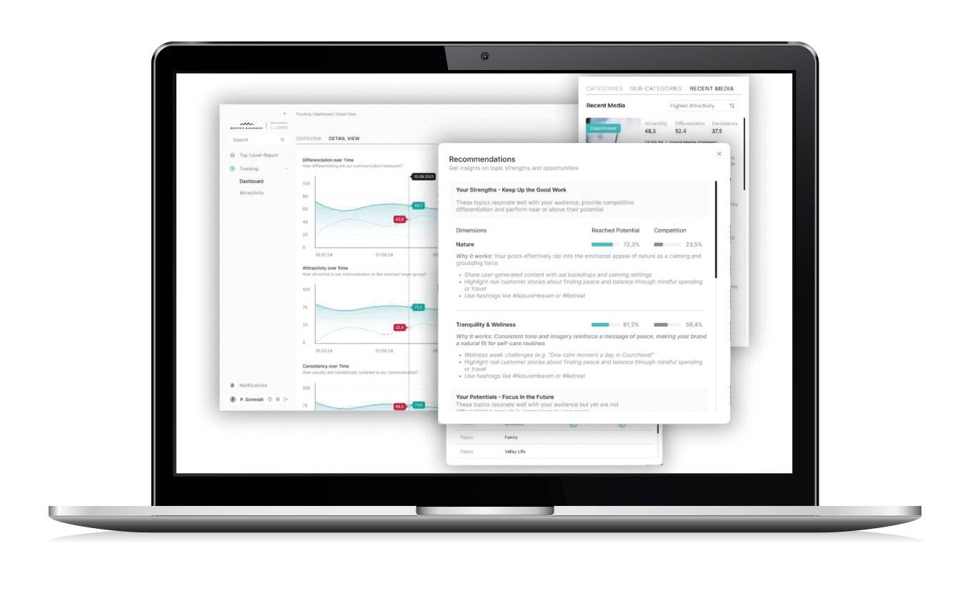 Durch die Einteilung in drei Themenbereiche (Attraktivität, Differenzierung, Konsistenz) bieten wir einen Überblick über den „Status Quo“ der eigenen Destinationsmarke in der Online-Welt und identifizieren Potentiale, um die eigenen Stärken auszubauen.